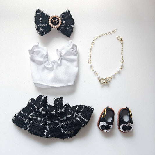 Labubu Compatible Mini Doll Tweed Dress Outfit Set (2 color options)