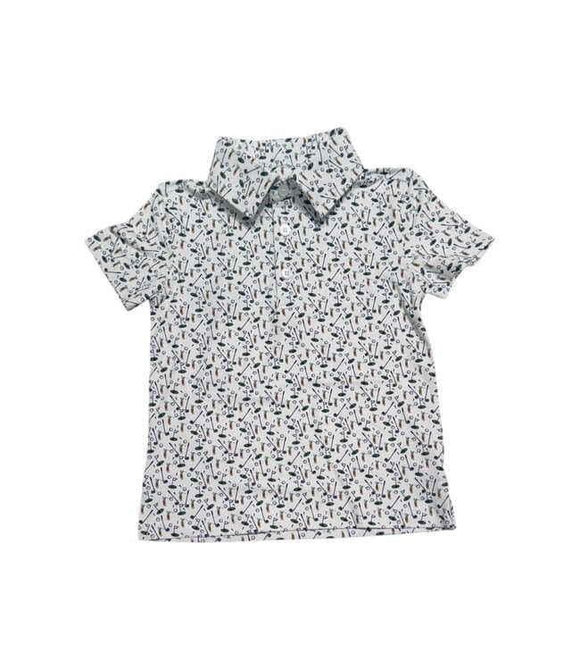 Your little golfer will be course-ready in the On the Green Polo! Featuring breathable performance fabric and a playful golf print, this boys polo keeps him cool, comfy, and stylish from playdates to tee time.