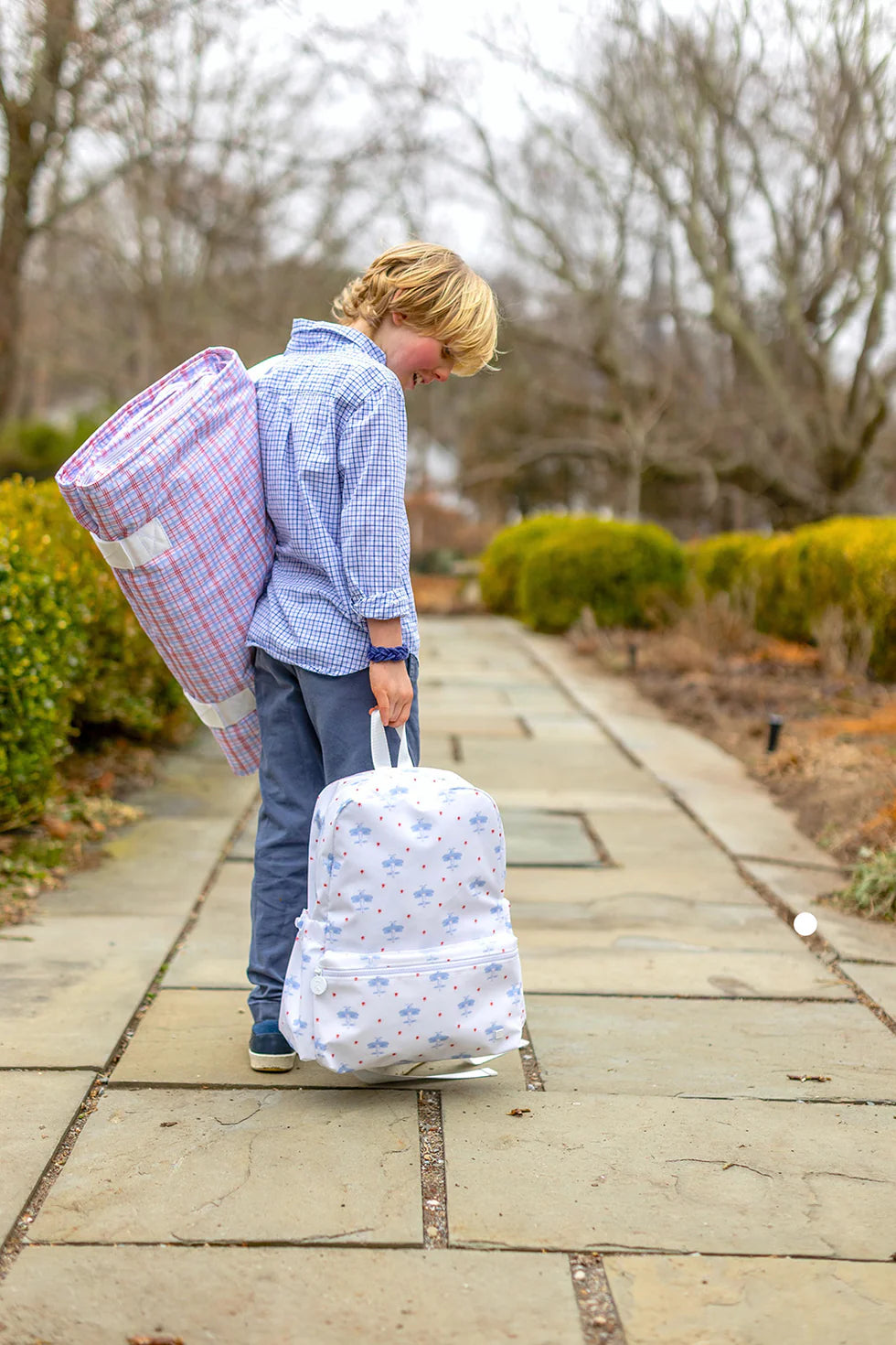 NAP MAT - CLASSIC PLAID RED, the perfect solution for a comfortable and clean nap time! Made with our signature coated print outer that provides a wipeable and antimicrobial exterior. Our FLIP & FOLD design is easy to open and close for all ages. The full inside zip around cover ensures dirt, germs, and little creatures to stay on the outside and not on the plush fleece inside where your little ones lay. Each mat has a comfortable wide web shoulder strap for easy transport to and from school and for travel!