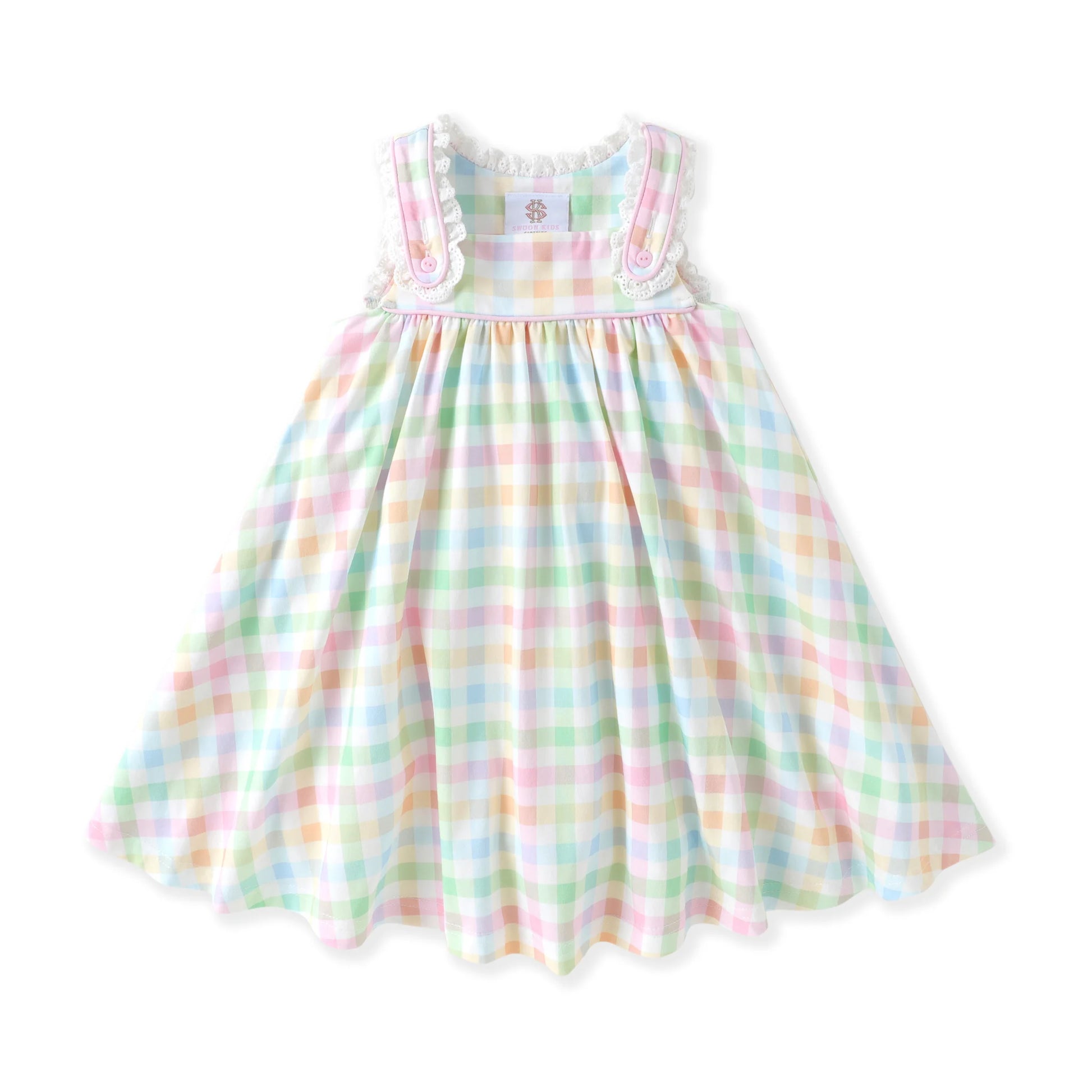 Pastel Plaid Eyelet Trim Dress