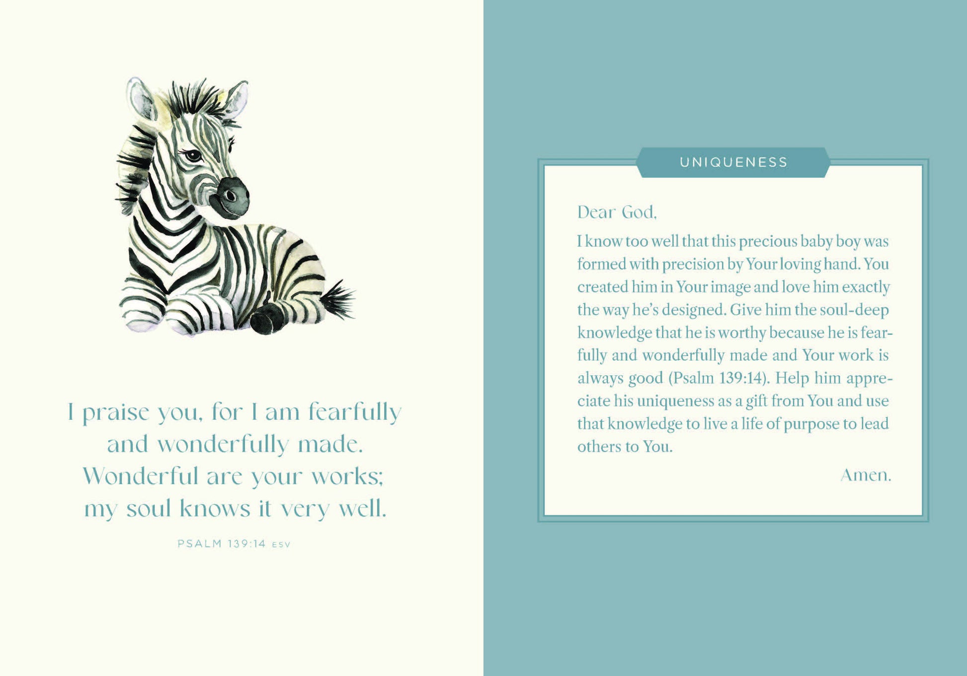 Beautifully written and illustrated, this highly giftable book features 40 life-changing prayers to help parents speak spiritual truth and blessing over their newborn boy’s life.